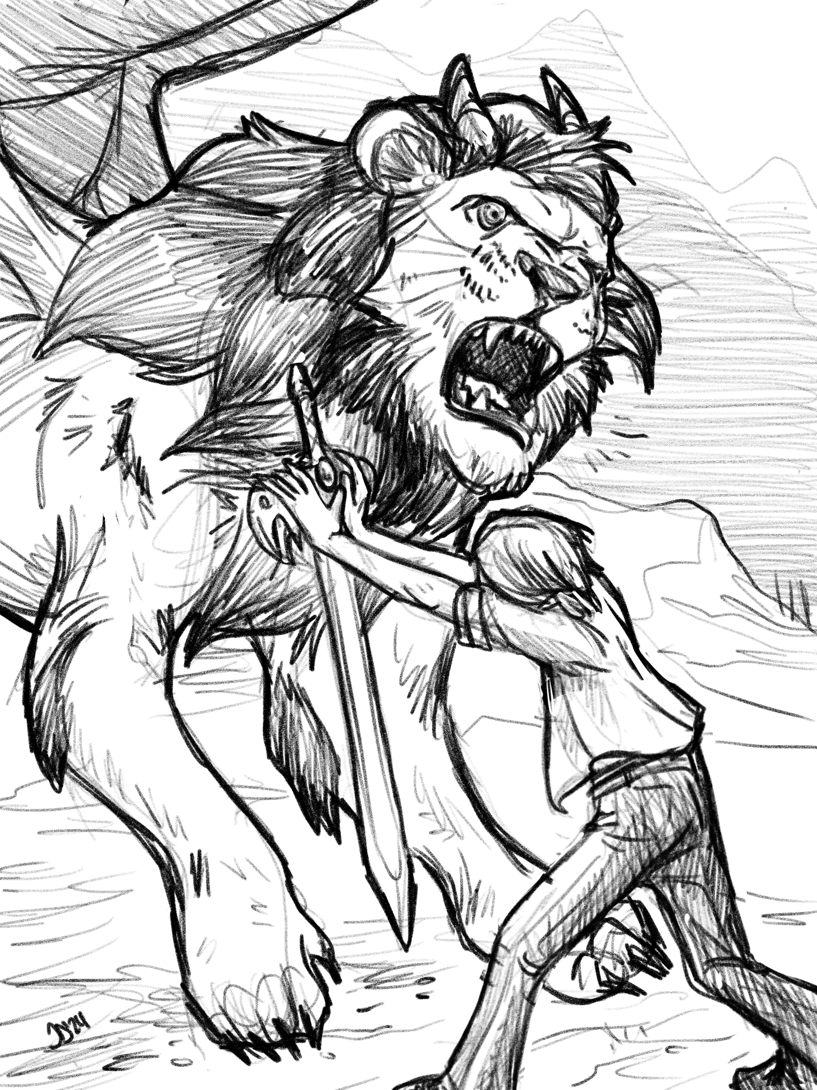 “Aarrkk!” Hylas twisted to the side and retched as the sword sliced across his maned chest.