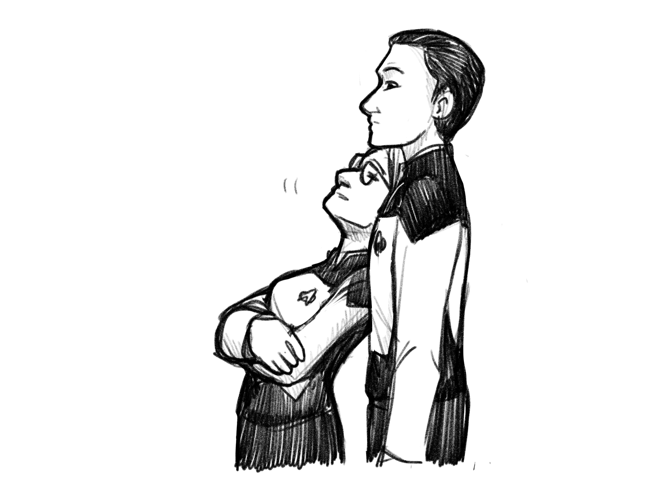 “Excuse me,” the Vulcan woman lowered her head as she passed him. She continued down the hall until she passed a befuddled Data, staring at the empty wall where Adrien once had been.