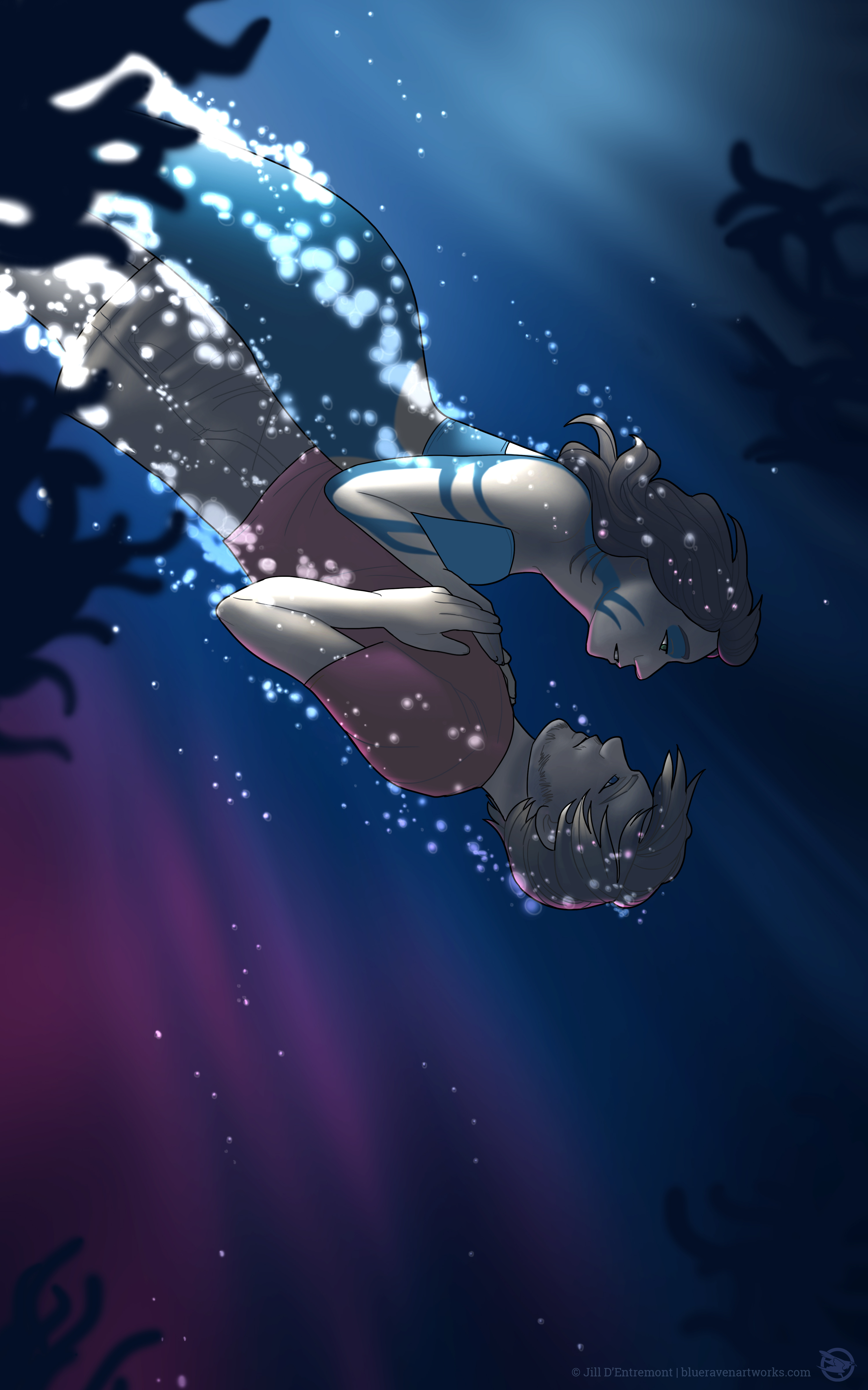 The Midnight just released a new song from their upcoming album yesterday. I think this is the fastest turnaround from new song to artwork I've ever had :) It just hit me hard and I had to draw Luis and Sapphyre immediately. Falling into the deep blue...