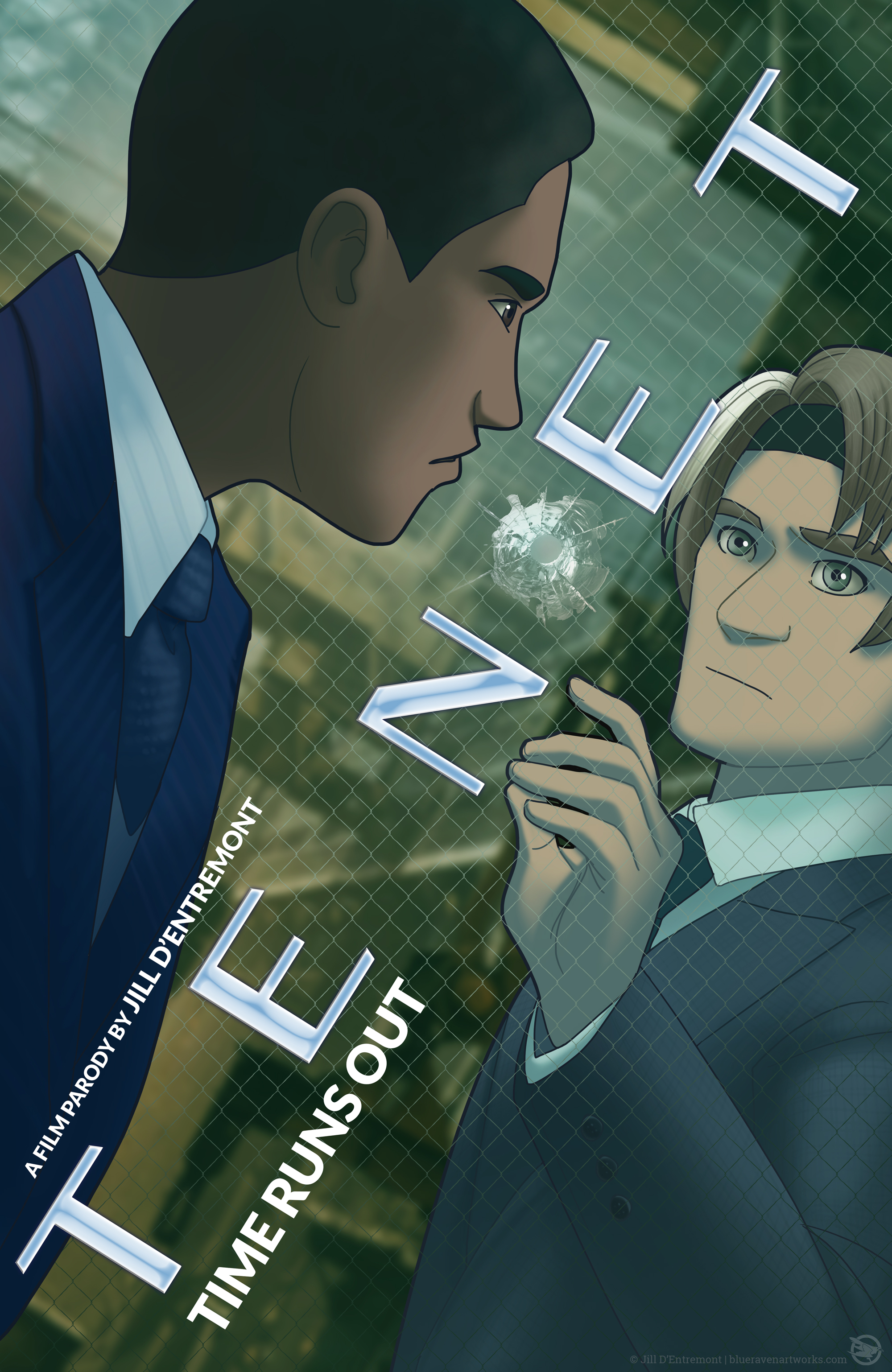 This is a parody of this awesome poster only I recreated everything; from the wire mesh window pattern to a stock bullet hole and finding the TENET font (it's Acme Extra Wide btw).