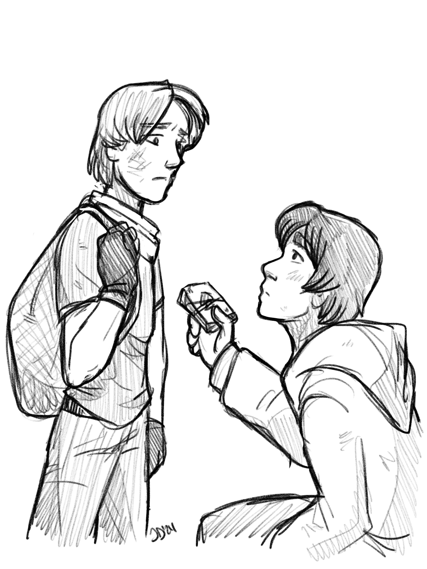 The boy’s form deflated with relief, though a different sort of pang began to take over in his stomach. Cautiously, he raised his shoulders in defense as his brother gently shut the door and walked around their pair of beds to see what he had been hiding.