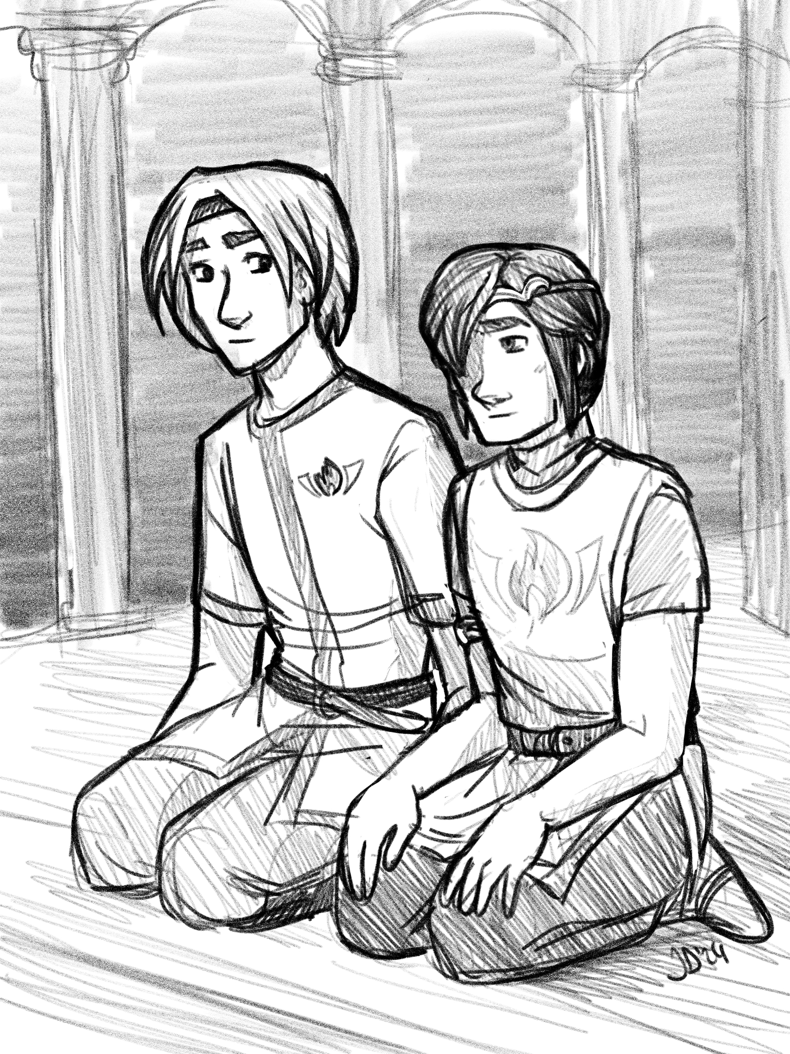 He blinked and cautiously stepped up to Dorian, passing through thin strands of moonlight that painted the floor between each column. His worn boots and simple tunic seemed out of place in such an area of reverence, but as he refocused his eyes to the pedestal, he was drawn, almost mesmerizingly, to the fire. There was nothing for it to consume, and yet it burned steadily above the smooth top of the pedestal.