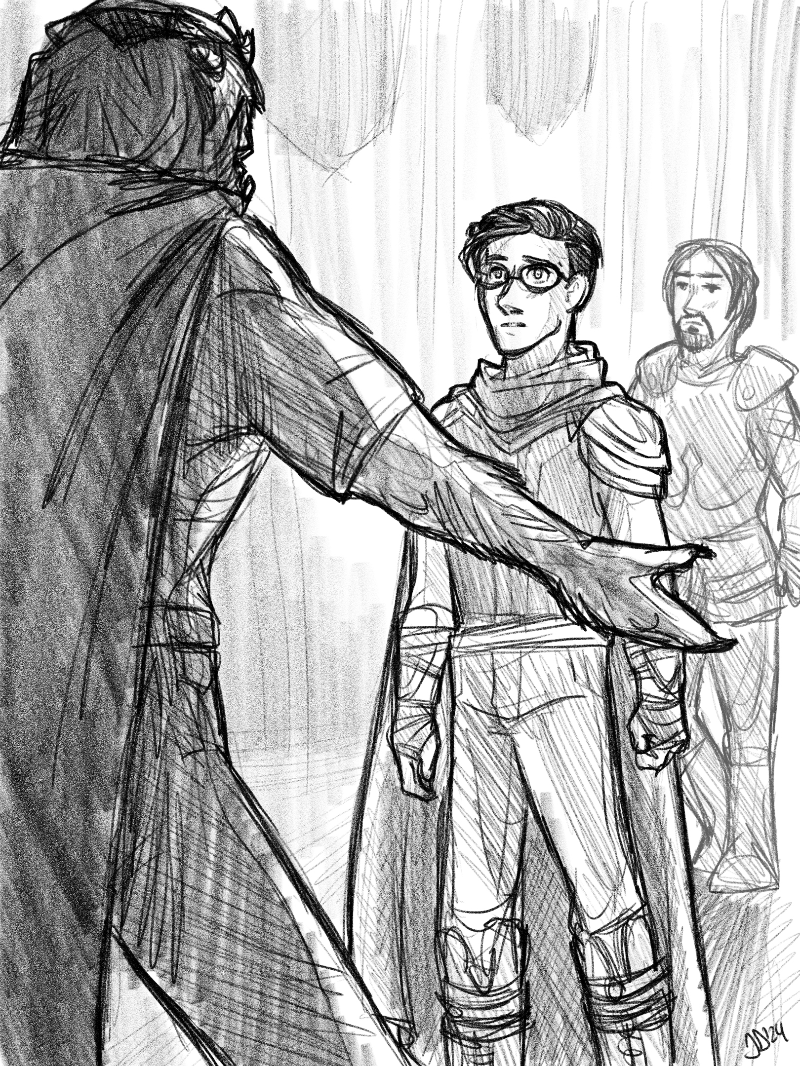 The tall wooden doors creaked open, grinding against their hinges. The doormen ceased movement once the opening was wide enough for the knight of Daethos to enter–once the knight’s brother was pushed inside first.