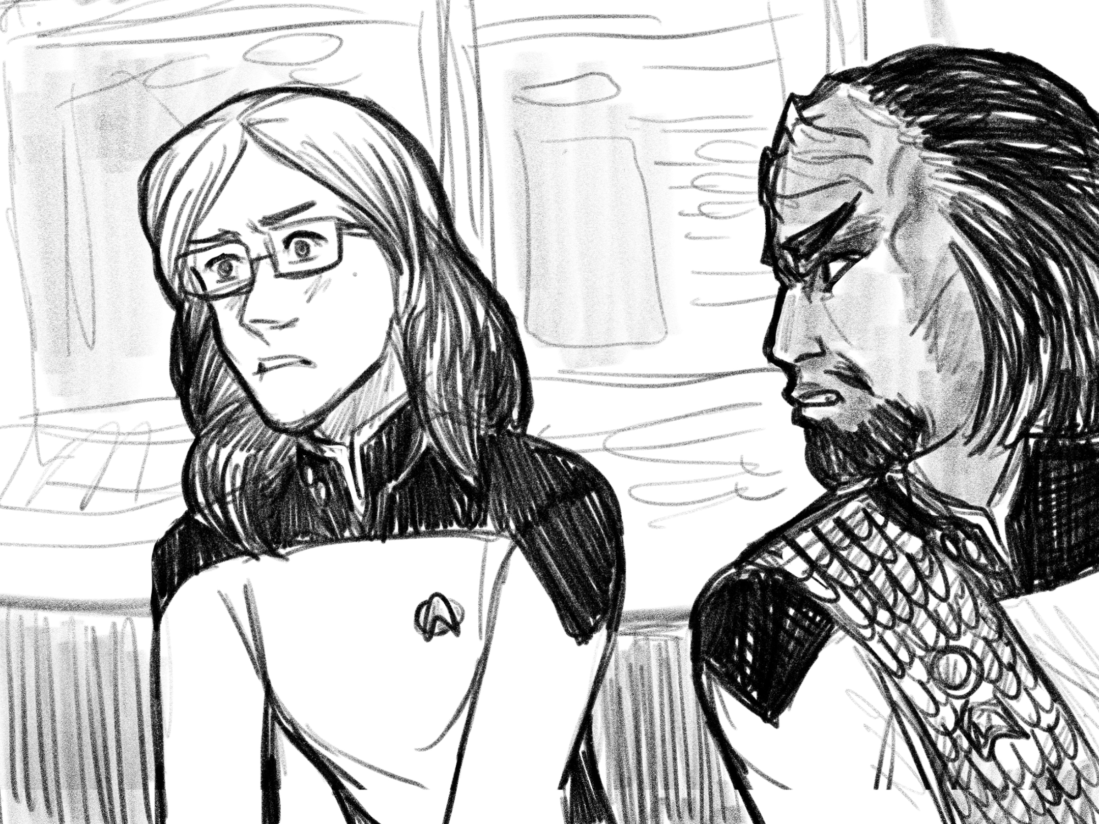 Data turned completely in his chair, first looking to Worf as the Klingon returned to monitoring his panel. When his eyes reached Deanna, he found her with a similarly concerned expression. She gave him a knowing nod and dismissed herself to follow.