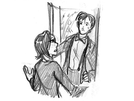 In his usual awkward style, he rocked back and forth for a moment with a puzzled look on his face before finally bending down and lightly kissing my cheek. He then turned and opened the door. I watched as he closed it behind him, and a few moments later, the familiar whooshing of his TARDIS disappearing from this dimension rose up outside the window.