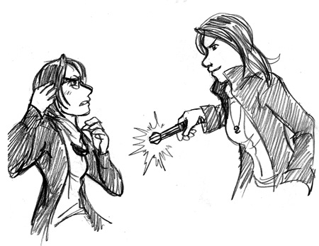 "And there it is!" Raven took a casual step forward with her hand raised, throwing her shawl backwards into her TARDIS. "The accusation! Well, allow me to explain what really happened!"