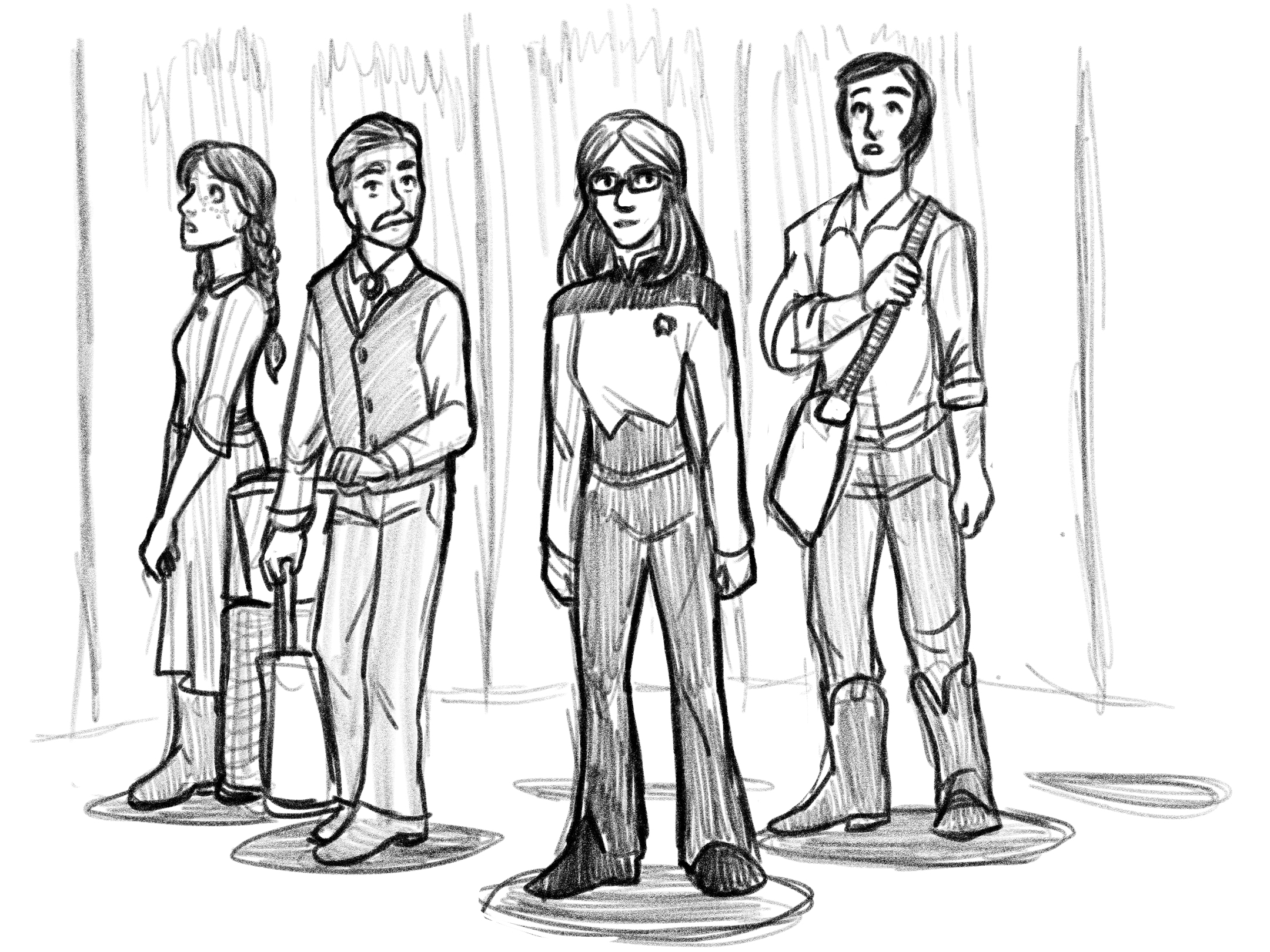 “It’s good to be back,” Gemini smiled at Chief O’Brien as she stepped off the pad. When she turned back around, she found the three behind her wide-eyed and frozen in place. “Mr. and Mrs. Hiller, Mr. Rowlett: Welcome to the Enterprise.”