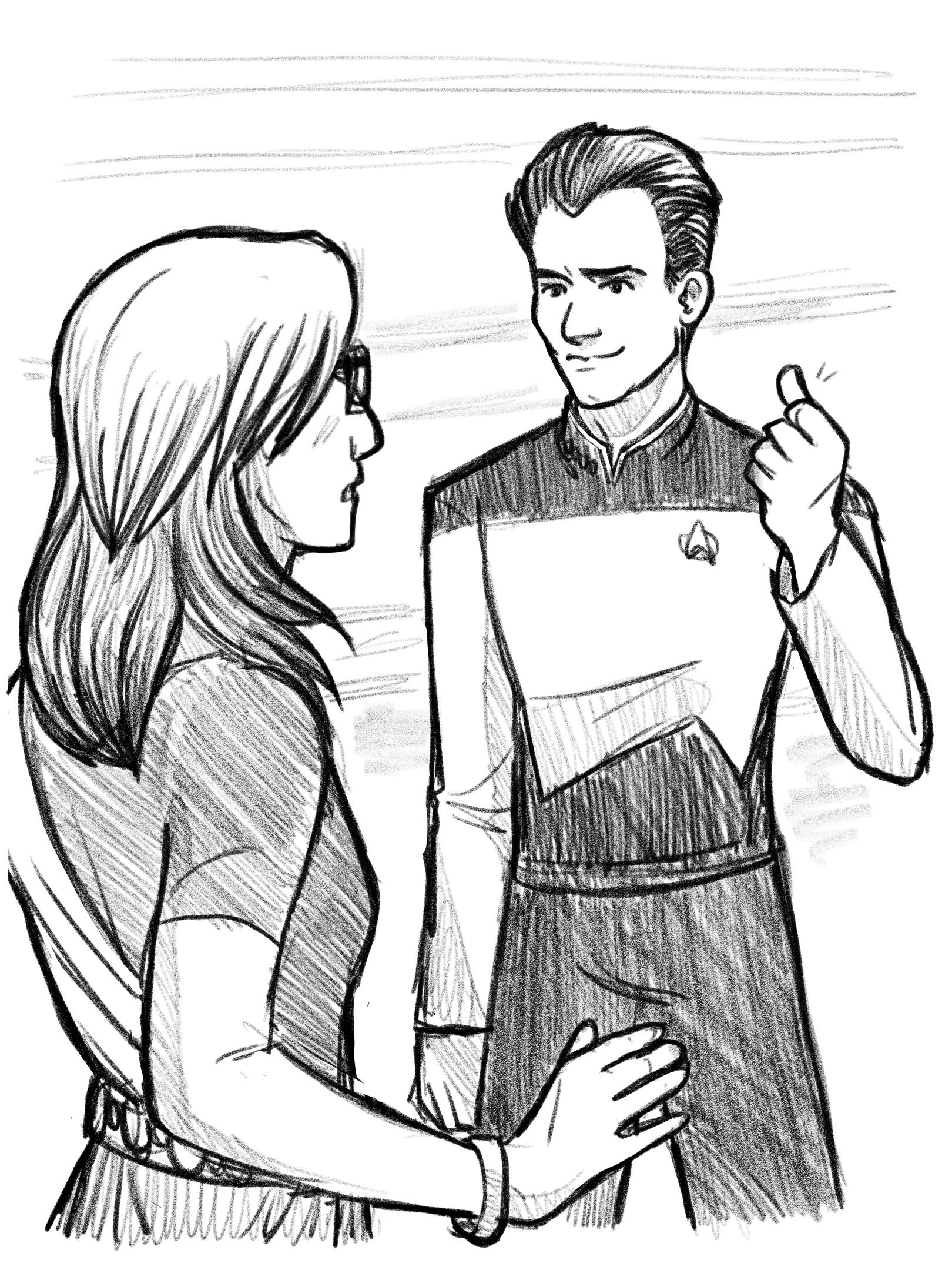 The Aravasti winced and clenched her fists. “No! I am married to Hudson Rowlett, and I am very happy with my marriage and my life on the Enterprise!” She scowled, noting the red uniform and communication badge. “You’re not even an officer, are you?”