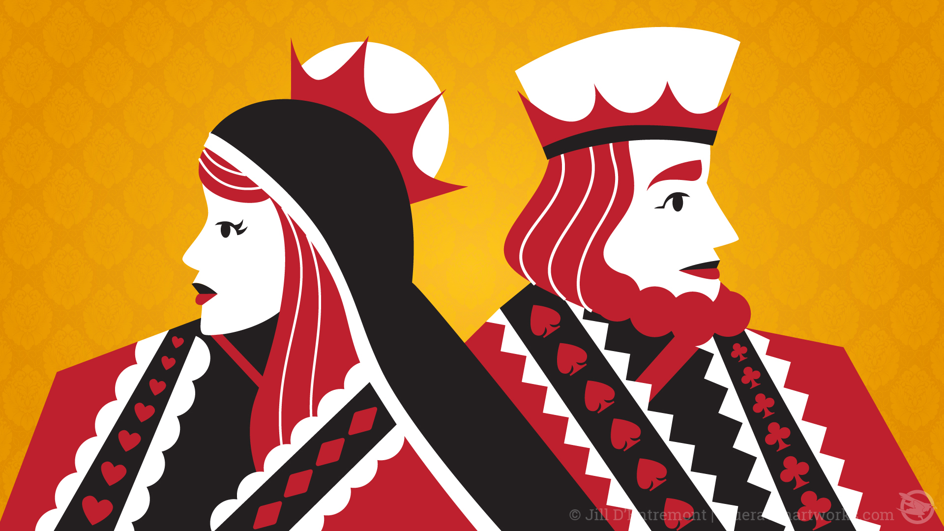 In the process of designing some casino tables, I designed this lovely lady and her lord. King and Queen of Hearts? You can decide...