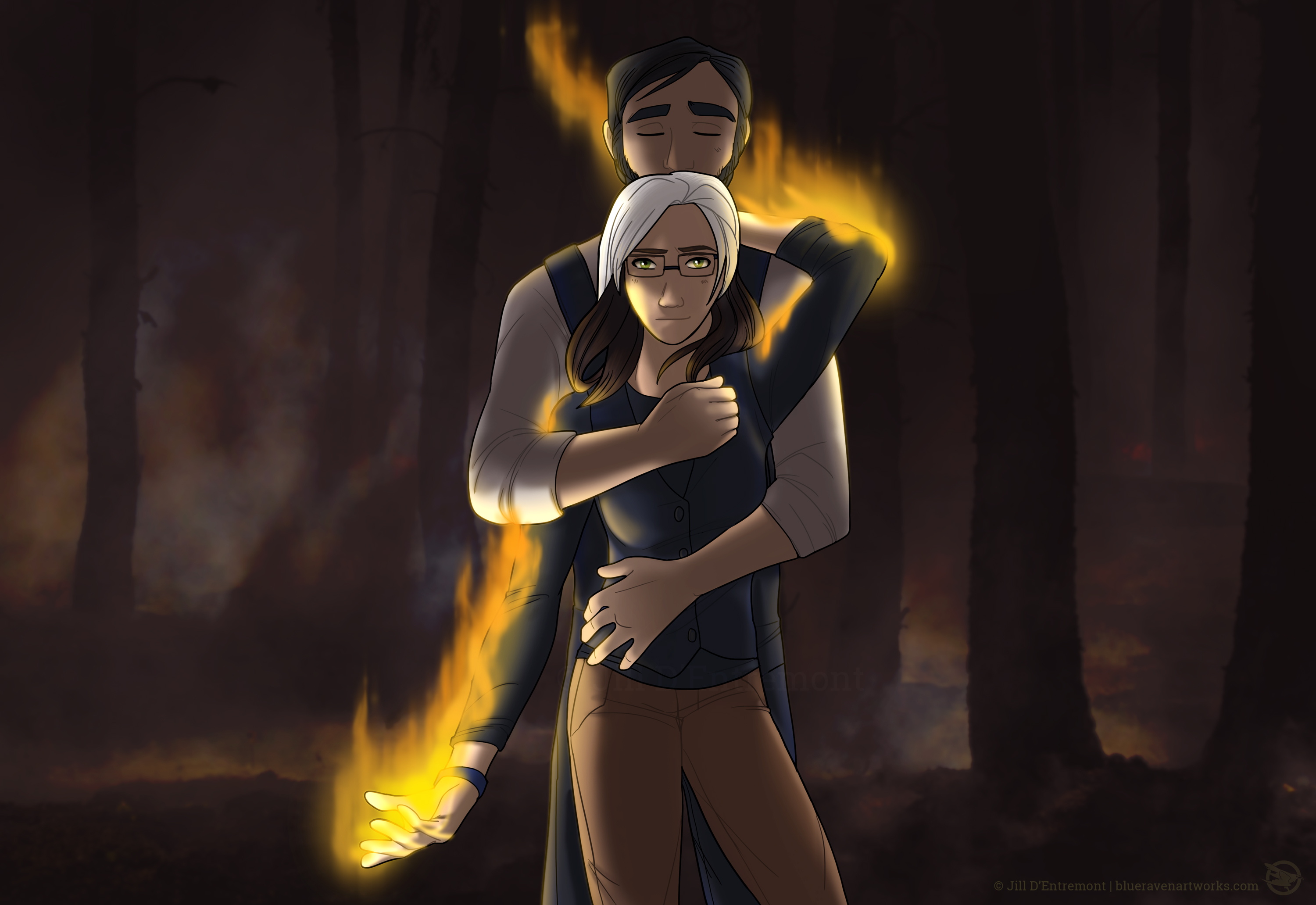 Pardon my taking that verse vastly out of context 😅 It just fit nicely on its own with this particular "HudGem" drawing. When an Aravasti bonds with someone, they could never harm them with their power - so in essence, Hudson is fireproof when Gemini is involved.
