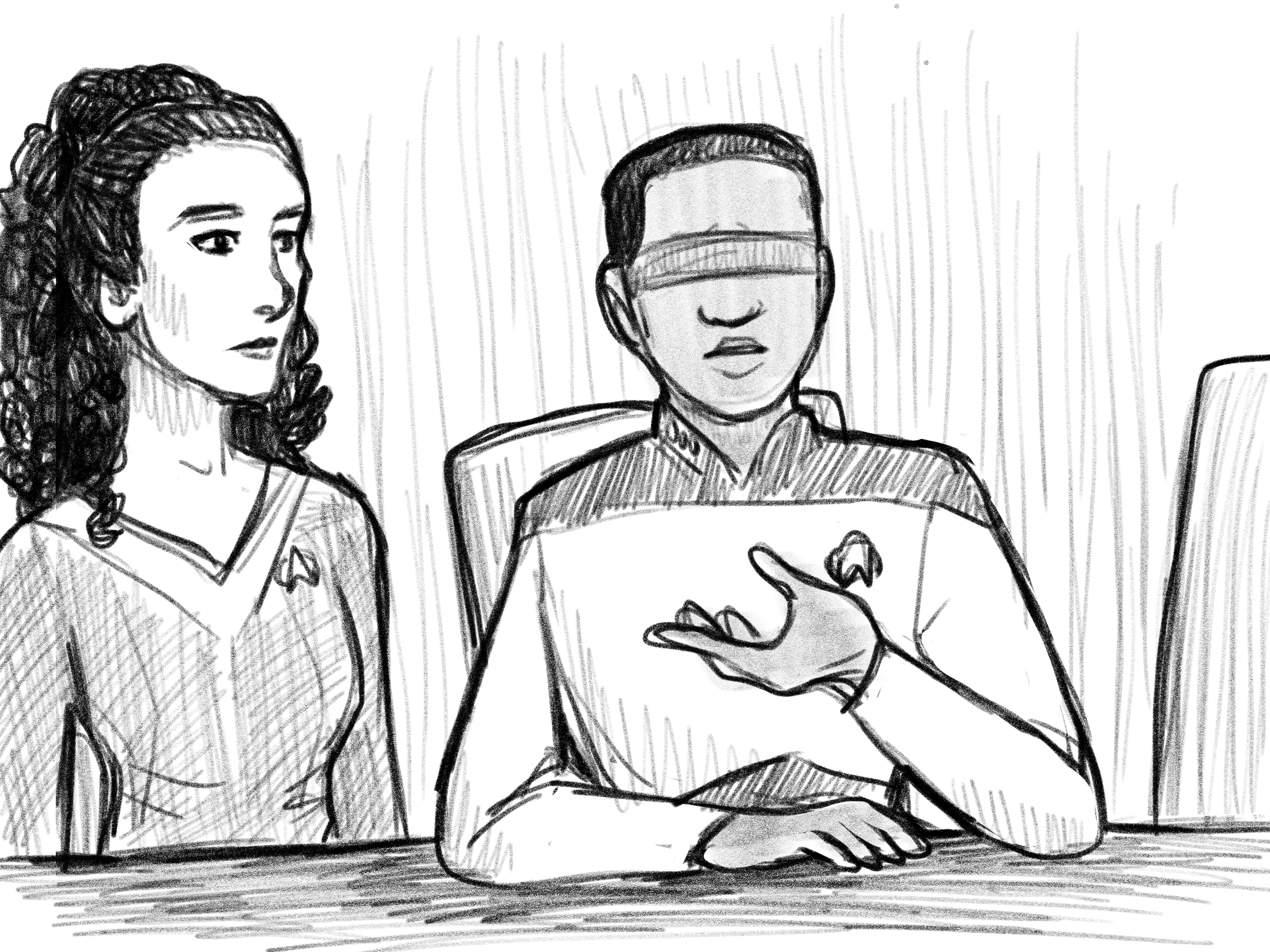 “Sir,” Data returned to the table as Worf returned to the room. “If we could invite the Klingon sect’s leaders to the Enterprise, we could simulate a second Klingon in the holodeck.”